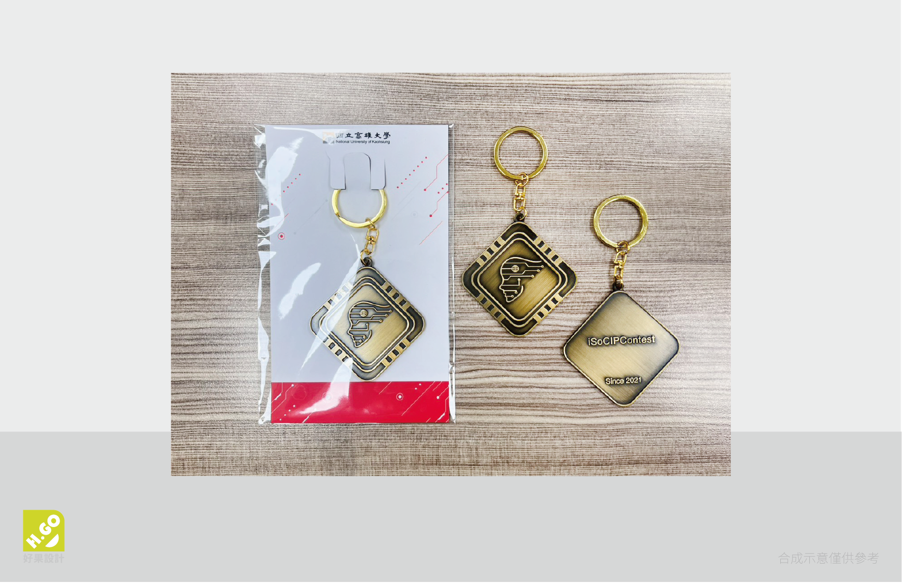 材質 鑰匙圈採用雙面金屬製作,表面為電鍍古金效果,凹面無入色,呈現自然深淺層次感,搭配金色鎖圈配件,整體質感穩重細緻。 尺寸 可依設計需求變化尺寸 設計注意事項 適合作為活動紀念品、校園專案、品牌識別周邊或企業贈品,兼具實用性與收藏價值,也能依不同專案需求進行客製調整。